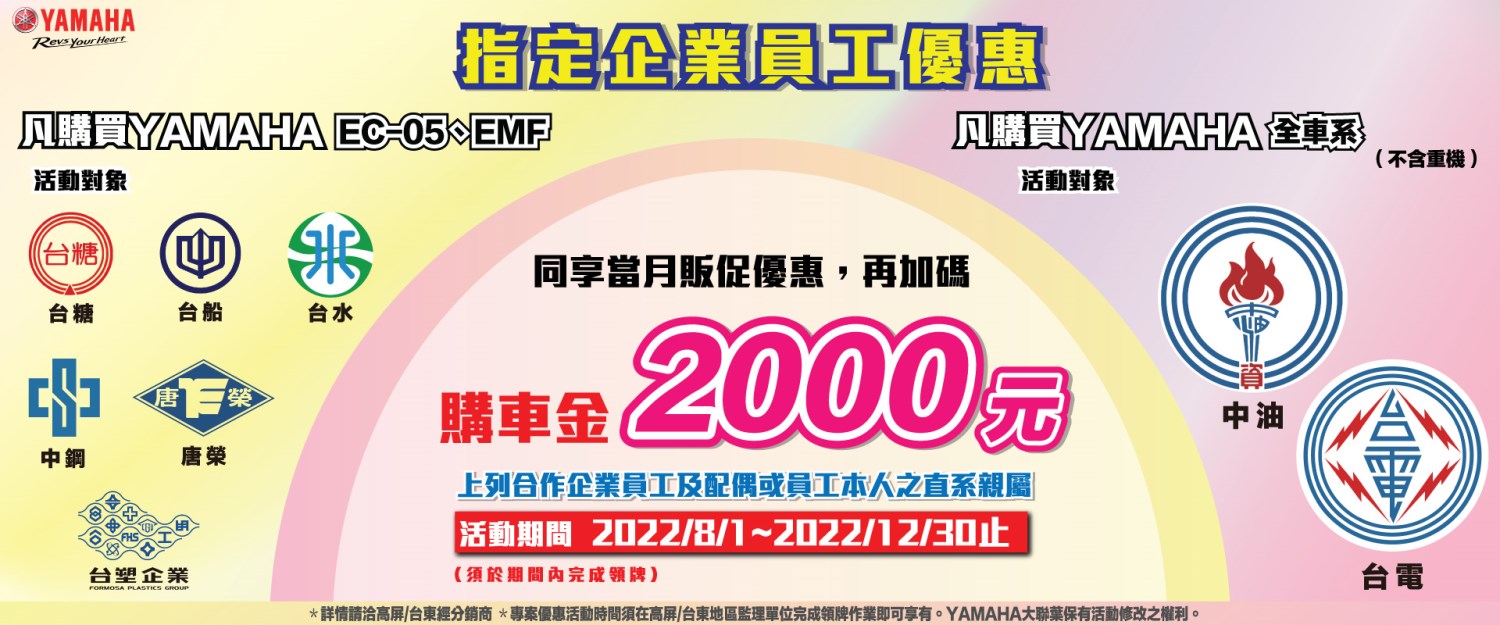 1.本專案指定企業員工購車詳情可洽高屏/台東經分銷商承辦。